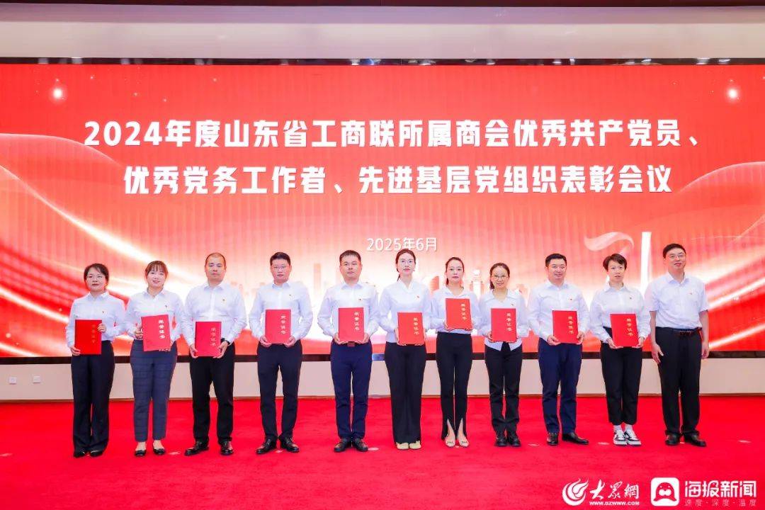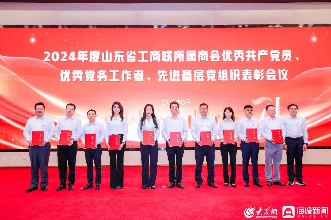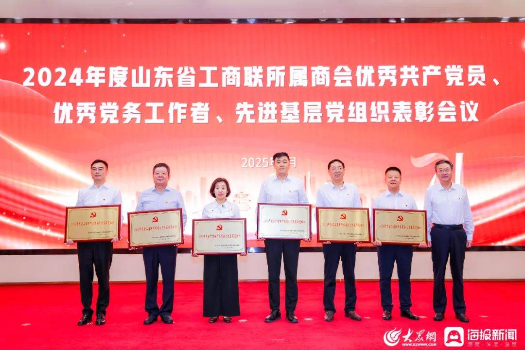 在2024年度省工商联所属商会“两优一先”表彰会上,省工商联、省委社会工作部领导为优秀共产党员、优秀党务工作者、先进基层党组织颁奖。