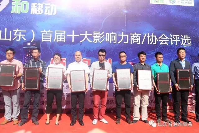 在欢呼而热烈的颁奖仪式上,山东省温州商会包揽三大重量级奖项,济南市发改委李勇主任宣布山东省温州商会被评为“十大影响力商/协会”,会长陆建林被评为“十大影响力商/协会会长”,秘书长陈一锋被评为“十大影响力商/协会秘书长”;山东省温州商会执行会长陈庆龙代表省商会上台领奖。