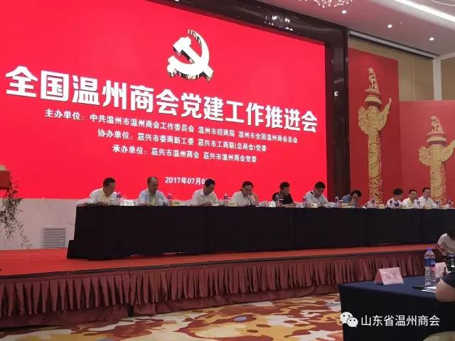 7月1日,由中共温州市温州商会工作委员会、市招商局、市全国温州商会总会主办的全国温州商会党建工作推进会在嘉兴举行。来自全国各地的100多名温州商会党组织负责人、温籍企业家、新生代温商相约相聚在党的诞生地嘉兴南湖共叙乡情、共谋发展。中共温州市在鲁温商党工委书记周光弟,副书记陈一锋,副书记兼济南市温州商会党支部书记陈朝顺、副书记兼青岛市温州商会党委书记徐海东应邀参加会议。