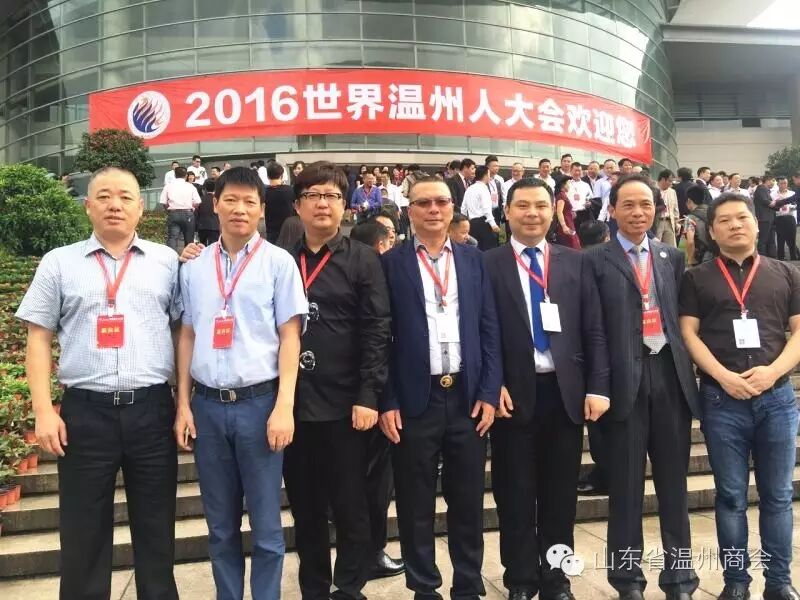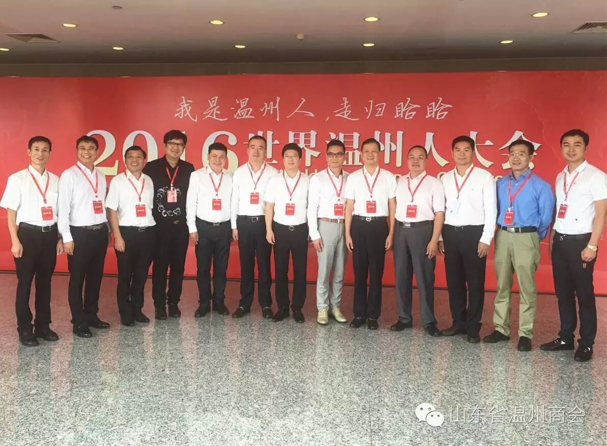 山东省温州商会会长陆建林(前排左五)率领山东温商代表参加会议