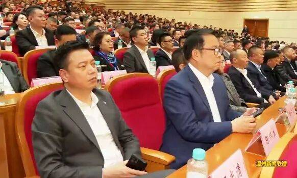 省温州商会会长吕金朝在会议现场(前排左五)